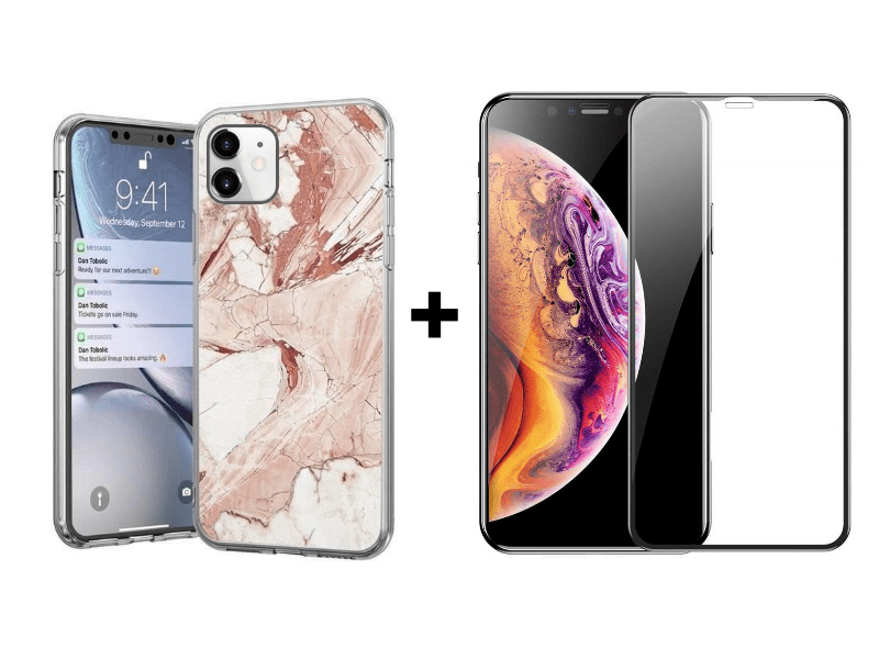 - 9D SKLO + KRYT 2v1 pre Apple iPhone 12 mini marble ružové