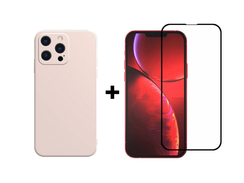 9D SKLO + KRYT 2v1 pre Apple iPhone 13 Pro - silikónové ružové