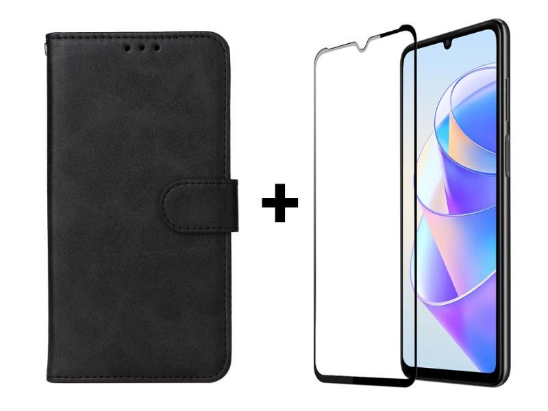 9D SKLO + PUZDRO 2v1 pre Honor X7a - Knižkové SOLID čierne