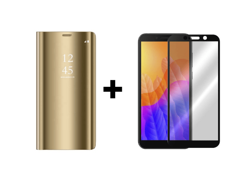 9D SKLO + PÚZDRO 2v1 pre Huawei Y5P Clear View zlaté