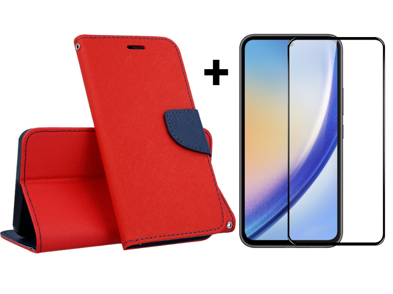 - SKLO + PUZDRO 2v1 pre Samsung Galaxy A55 5G - Knižkové puzdro FANCY červeno modré