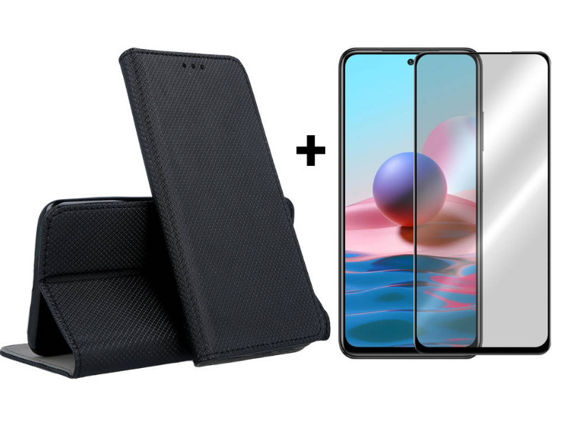 Výhodné balenie 2v1 pre mobilný telefón. Praktické knižkové púzdro a ochranné tvrdené sklo na displej telefónu.