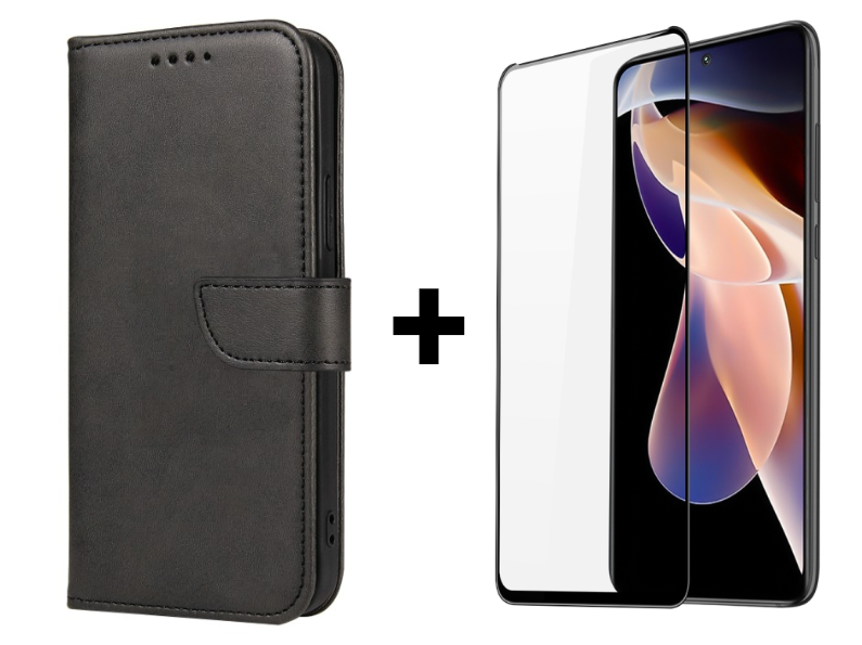 - SKLO + PUZDRO 2v1 pre Xiaomi Redmi Note 11 Pro / Note 11 Pro 5G - Peňaženkové puzdro BUCKLE čierne