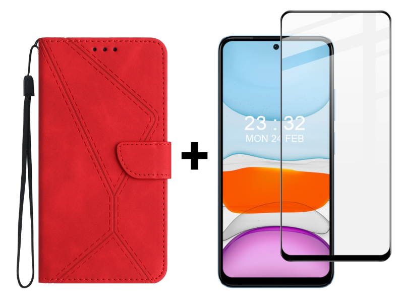 SKLO + PUZDRO 2v1 pre Xiaomi Redmi Note 12S - Knižkové STITCHING červenéSkladom11,39 €